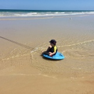 Shrieks of laughter punctuate the soft waves crashing along the shore